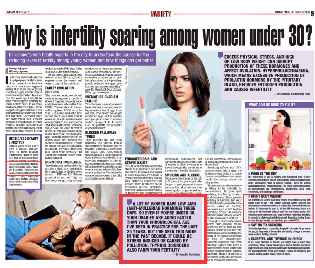 - Bombay Times, The Times of India - Why is infertility soaring among women under 30? - 11th April 2019
